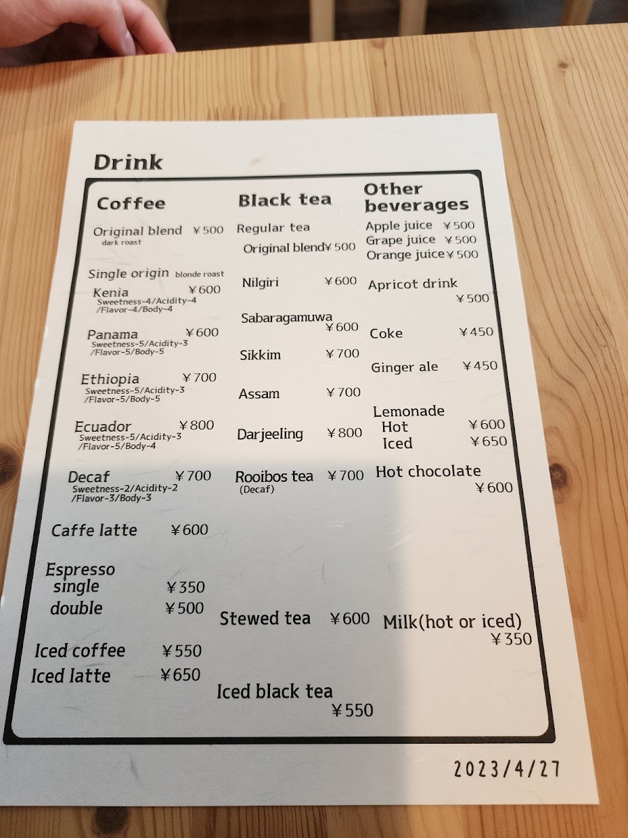 Inspiración Café de Origen Menu